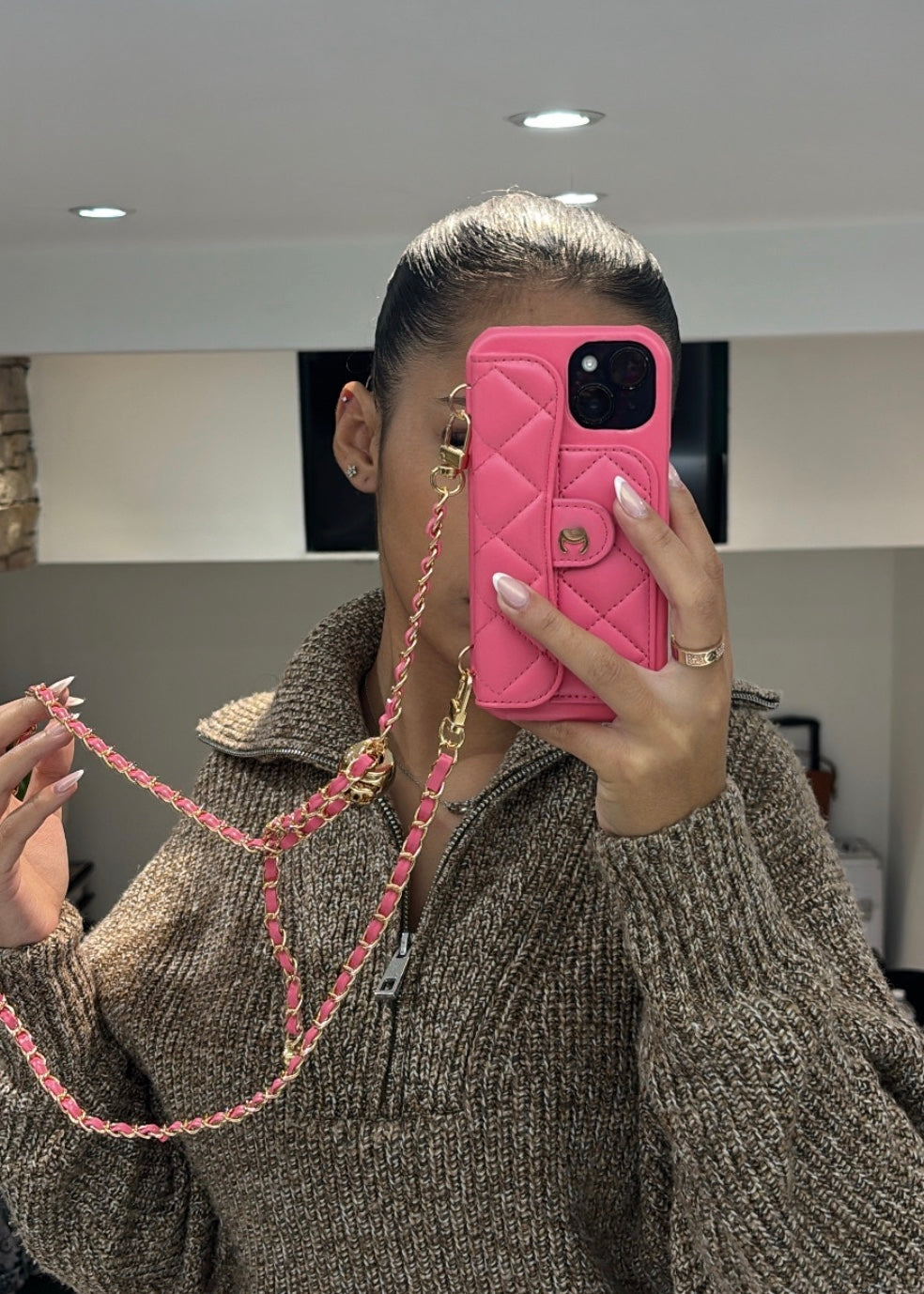 Étui de téléphone matelassé rose pâle élégant CeCe avec chaîne dorée